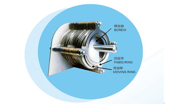 2、固定環和游動環之間形成的濾縫以及螺旋軸的螺距從濃縮部到脫水部逐漸變小。