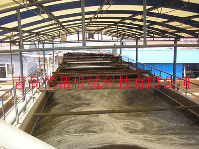 渦凹、溶氣組合式氣浮機為一體化撬裝設備,渦凹氣浮系統和溶氣氣浮系統共用一個箱體,共用一臺刮渣機,設備體積減小,運輸、安裝比較方便。進水經加藥混合后,在渦凹曝氣機的攪拌和曝氣的作用下,藥劑和污水更成分的混合反應并與氣泡粘附,大部分懸浮物漂浮于池體表面,經出水堰調節水位后,浮渣不需經過刮渣機可自流進排渣槽排出,浮渣含水量低,濃縮效果好。經過渦凹曝氣機處理后的污水自流進溶氣氣浮系統,渦凹曝氣機所不能處理徹底的細小的絮體和污泥等懸浮物,經微小的氣泡捕捉上浮形成密度比較小的浮渣,再有刮渣機推送到排渣槽排出。處理后的水經過出水堰溢流出設備外。